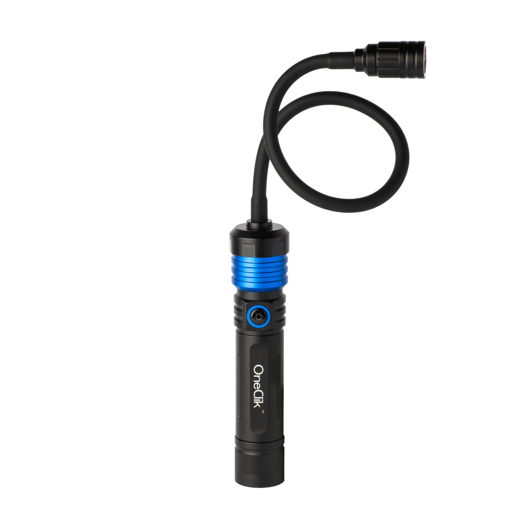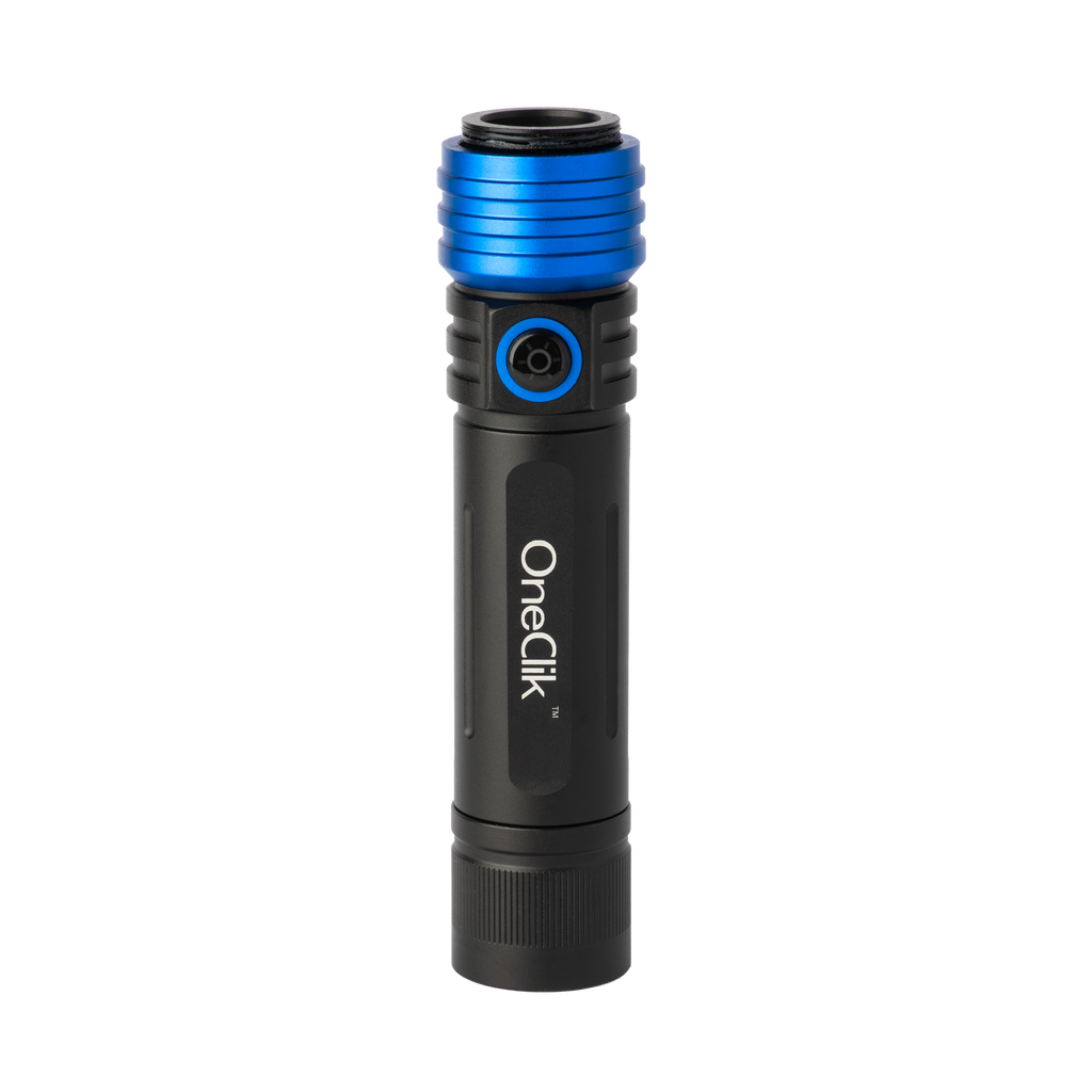 From an environmental point of view, the system is built to last. The battery is fully rechargeable, replaceable, and recyclable – a big difference compared to many other brands that seal their batteries inside the unit, making it impossible to change when the power cell wears out. That means you’re forced to throw away the whole torch, even though the LEDs can last around 100,000 hours. With OneClik, you can simply replace the battery and keep using your light system for years to come, saving waste and money in the process.