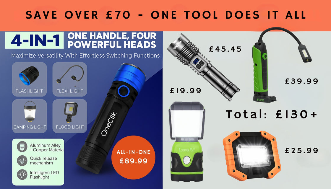 Already a best-seller in the United States, this system has earned a reputation for being tough, reliable, and incredibly versatile. By combining four professional-grade lights into one compact design, the OneClik saves you the cost of buying multiple devices and clears the clutter from your drawers. It’s a single solution you can rely on for camping trips, DIY projects, late-night roadside breakdowns, and unexpected power cuts at home. Wherever you are, and whatever you’re facing, the OneClik is ready to light the way.